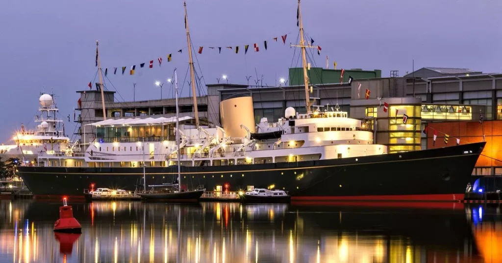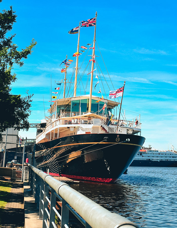 Former royal yacht of Queen Elizabeth II, now permanently berthed as a museum in Edinburgh.